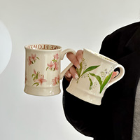 Lelyi INS Minimalist Vintage Floral Ceramic Cup High-potential Creative Fresh Style Coffee Mug